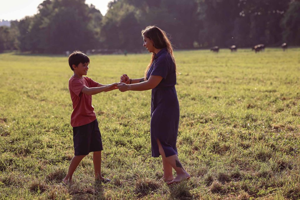 In the golden light of Irene Dairy Farm, with the cows peacefully grazing near-by, Julia’s family was delightful and both boys grew gradually more open and friendly as we played, looked at the cows, and explored the beauty of the farm.